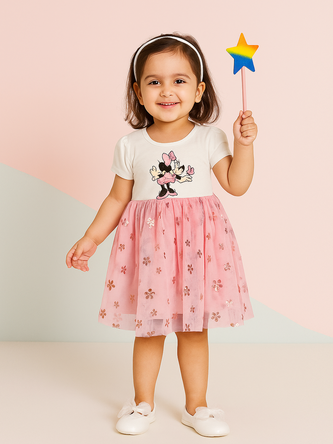 ‘Minnie” white & pink girls frock