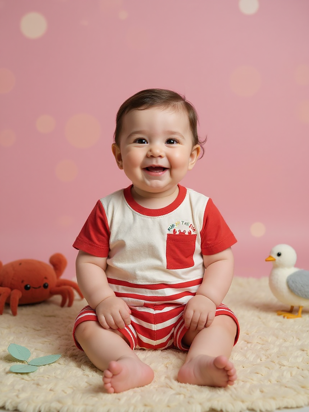 White and red striped baby set
